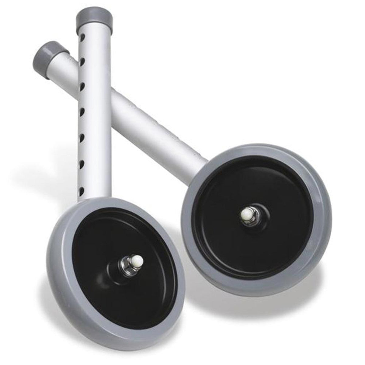 For Medline Walkers only - 5" Wheels provide enhanced maneuverability, especially over carpet or other unsmooth surfaces. Five-inch fixed wheels will allow the user to glide smoothly over rough terrains. Now available with eight adjustment holes to accommodate a broader range of user heights.