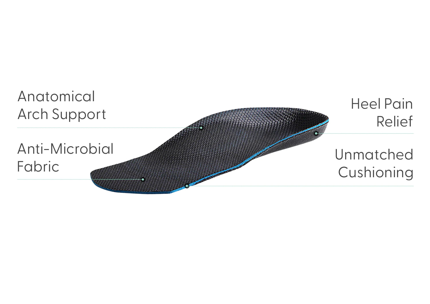 - EVA cushioning foam forms to the unique contours of your foot for maximum relief of pressure points and comfort.