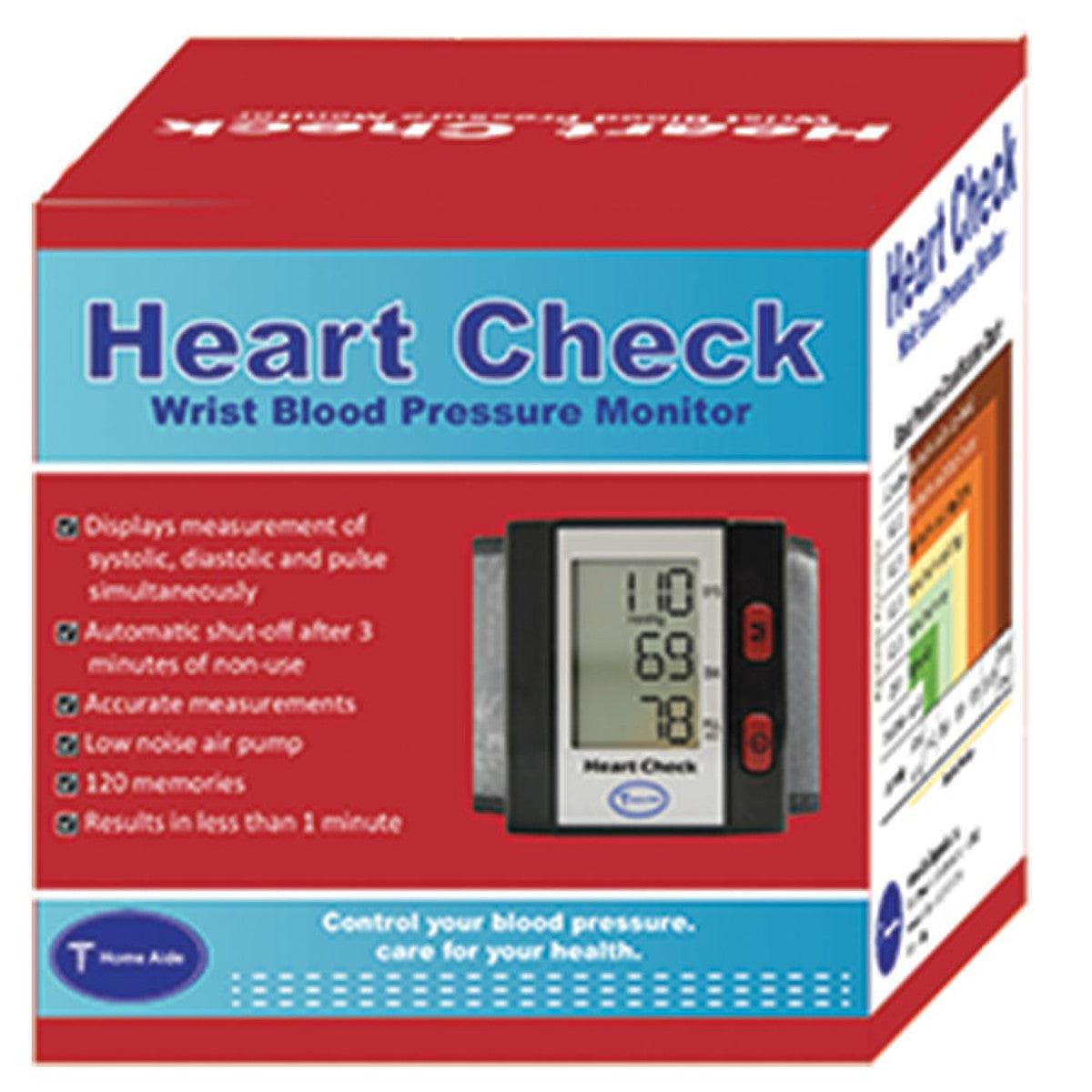 The Heart Check Digital Wrist Blood Pressure Monitor by Home Aide Diagnostics displays measurement of systolic, diastolic, pulse and time simultaneously. Measurements are displayed in just 30 seconds. This portable device uses 4 "AAA" batteries, allowing you to travel anywhere with it.