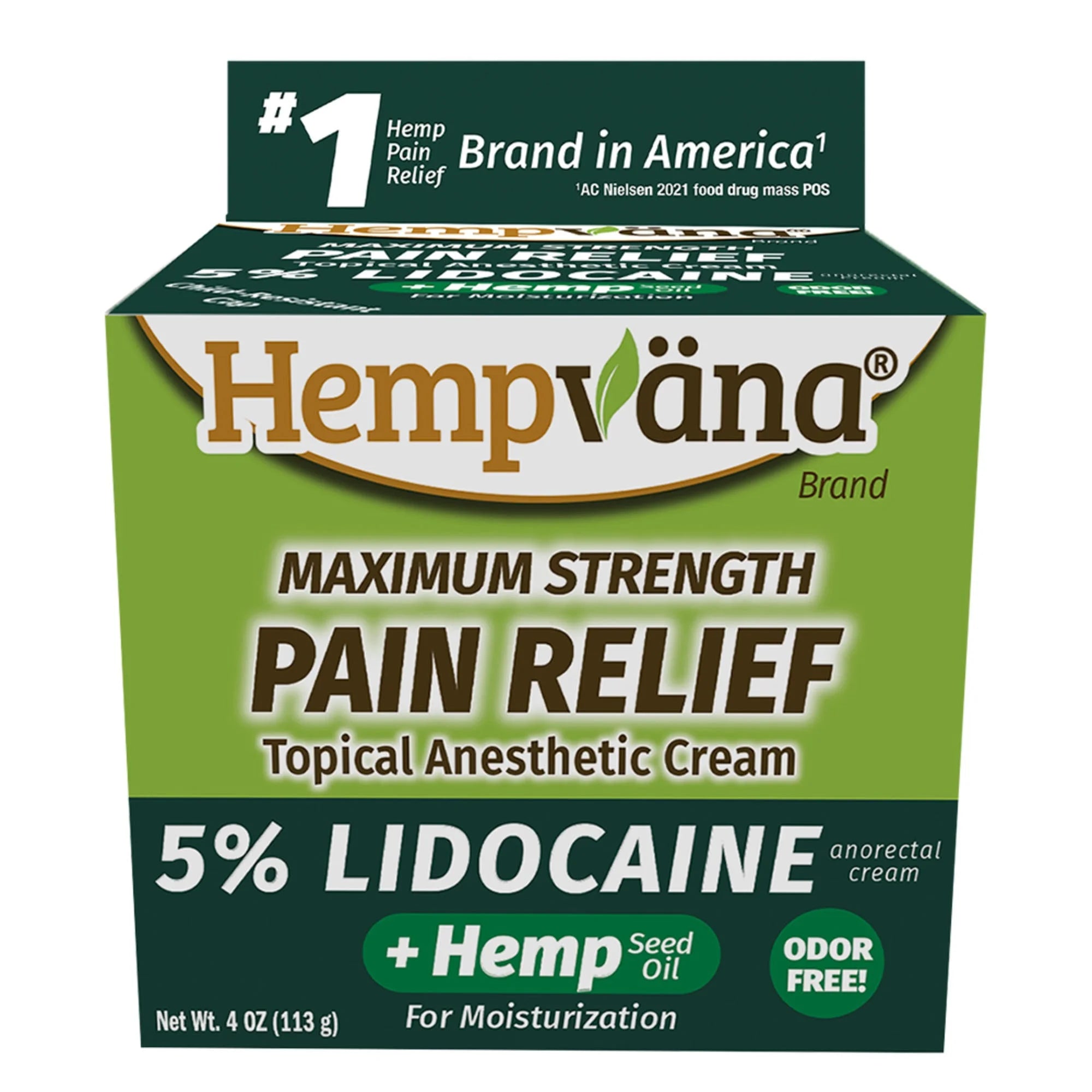 Hempvana Lidocaine 5% Relief Cream, for Anorectal Relief, Enriched with Hemp Seed Oil, 4-oz Jar