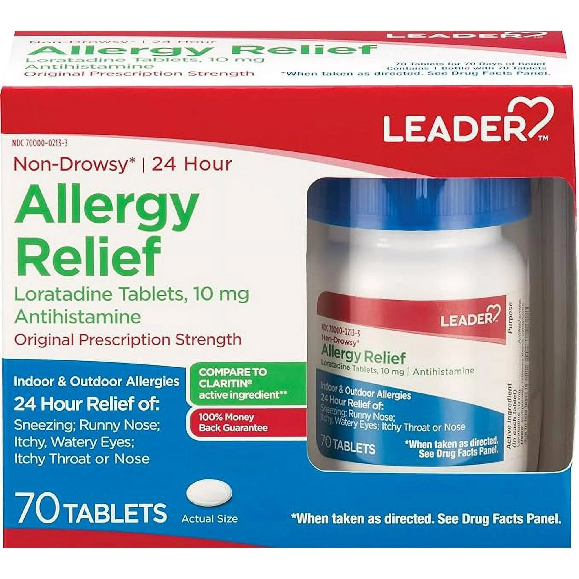 Leader 24 Hour Loratadine Allergy Relief Tablets, 70 Ea..