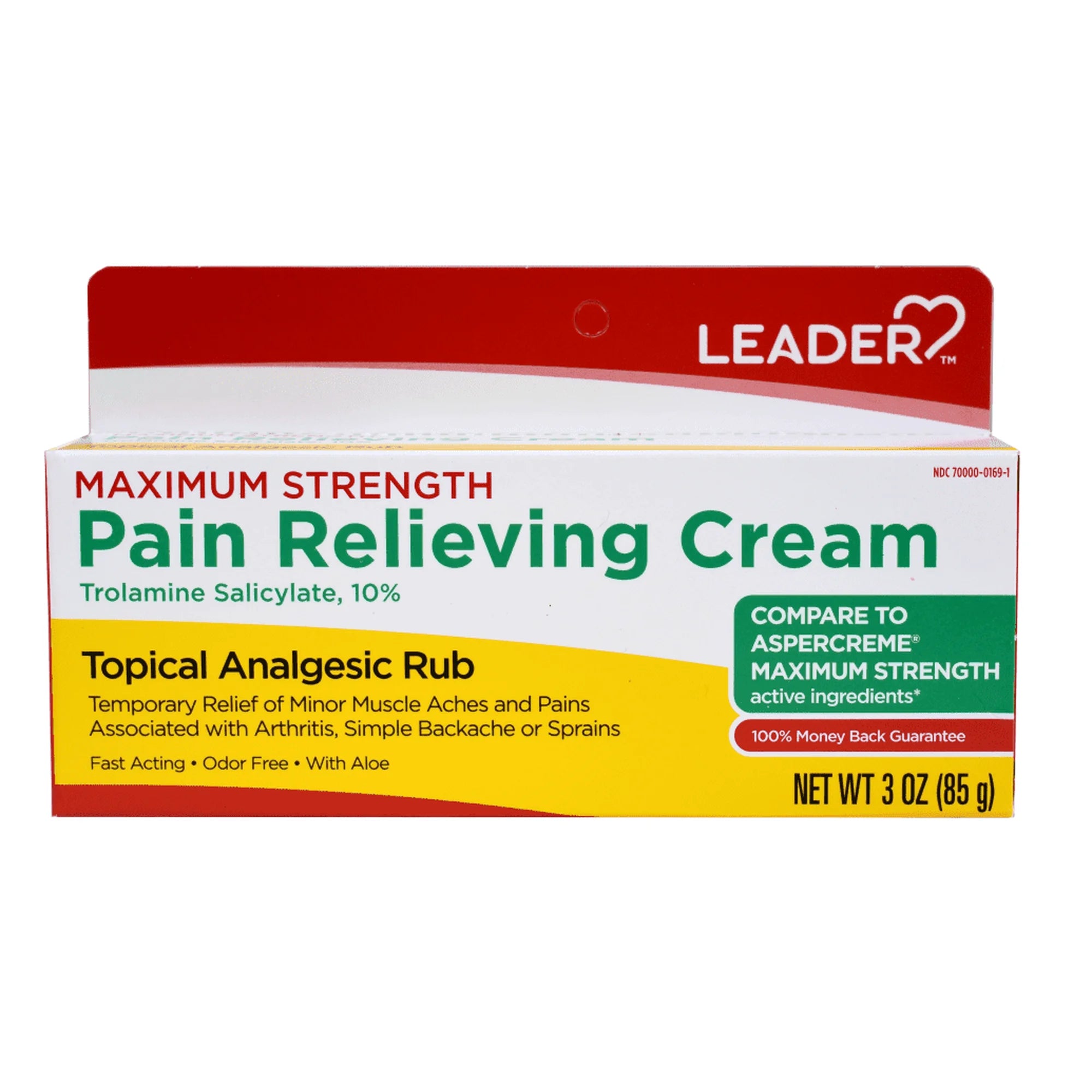 Experience soothing relief with Leader Cream Maximum Strength Pain Reliever Analgesic Rub. This 3-pack offers convenient access to long-lasting relief from minor aches and pains associated with arthritis, muscle strains, and backaches. The powerful formula provides targeted relief directly to the affected areas. With a non-greasy texture and quick absorption, it's an ideal choice for on-the-go relief, promoting comfort and mobility throughout the day.