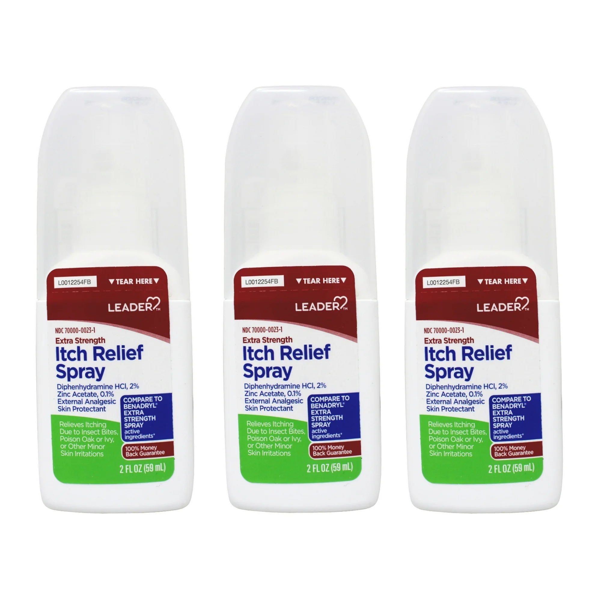 Leader Itch Relief Spray, Diphenhydramine HCl 2% and Zinc Acetate 0.1%, 2 Fl Oz - 3 Pack