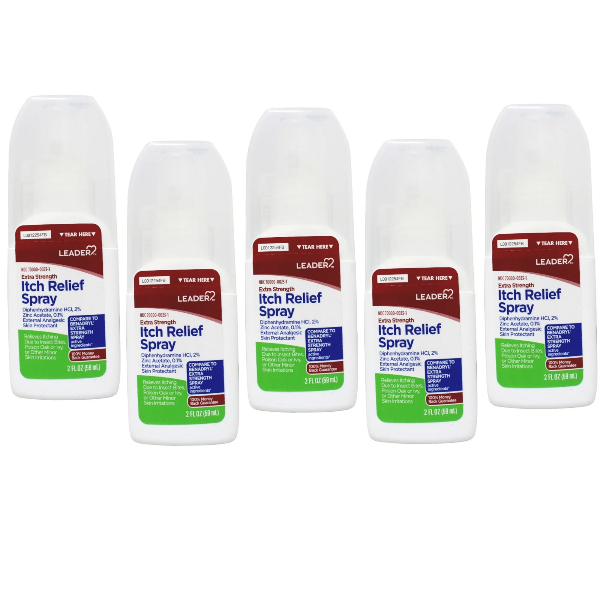 Leader Itch Relief Spray, Diphenhydramine HCl 2% and Zinc Acetate 0.1%, 2 Fl Oz - 5 Pack