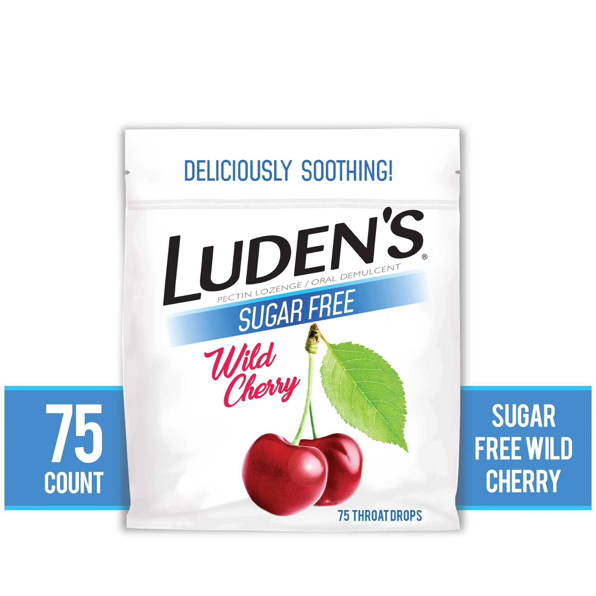 Luden's Sore Throat Drops, for Minor Sore Throat Relief, Sugar Free Wild Cherry Throat Remedy, 75 Ct