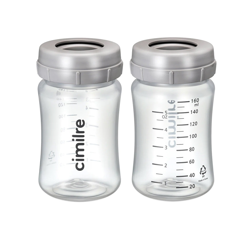 Expand your breast milk storage collection with the Cimilre Storage Bottle Set. Bottles can be used safely to store expressed milk in the refrigerator or freezer. They have an easy-to-read measuring scale on the side and can hold up to 5 ounces. Please note that bottle nipples and bottle caps are not included.