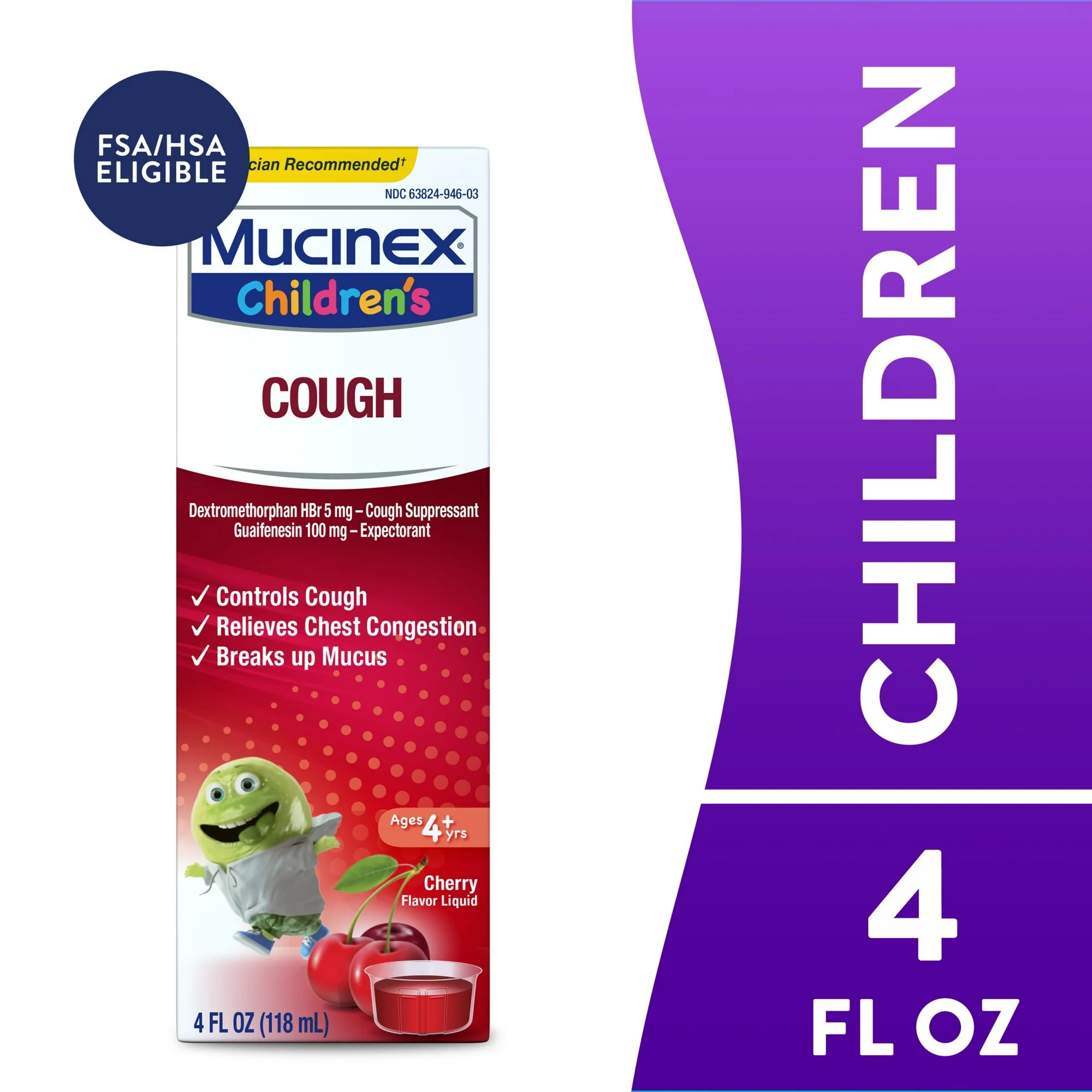 Mucinex Children's Cough Medicine, Liquid Cough Suppressant & Expectorant for Kids, Cherry Flavor, 4 fl oz