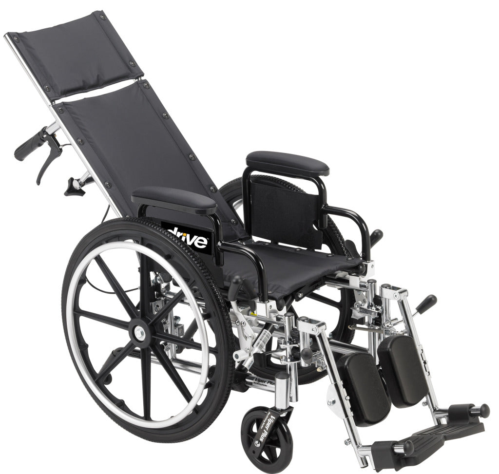 Drive Pediatric Viper Plus Reclining Wheelchair offers a state-of-the art hydraulic reclining mechanism which allows the backrest to recline from 90° to 180°. The special offset rear wheels ensure stability and evenly distribute the user’s weight in all reclined positions.